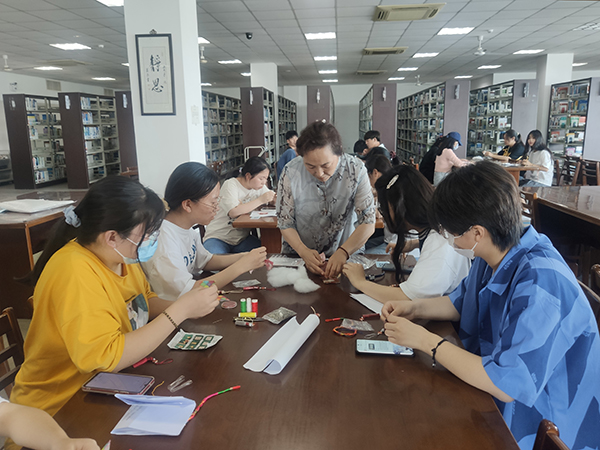 “芳艾香囊身佩戴,避邪祛病祈安宁。”佩香囊,是端午传统习俗之一,可“襟头点缀,避邪驱瘟”。按疫情防控要求,图书馆分别组织了四场制香囊活动(学生三场,教师一场),每场不超过40人。图书馆为到场师生读者发放香囊材料包和五彩线,由专人指导,现场制作,做好后自行带回留作纪念或馈赠佳友。活动受到了广大师生读者的好评,大家都乐在其中,收获了一份端阳节礼物。