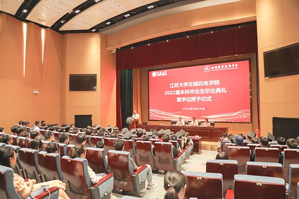 6月20日上午,江苏大学无锡机电学院2022届高职本科生毕业典礼暨学位授予仪式在综合楼一楼报告厅隆重举行。本次毕业典礼以线下主会场和线上直播相结合的方式举行,为232名圆满完成学业、即将开启人生新征程的学子送上衷心祝贺和美好祝福。