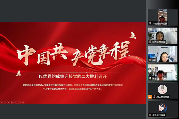 为庆祝中国共产党成立101周年,以实际行动迎接“七一”,献礼党的二十大,6月30日下午,开源创新创业学院党总支学生党支部举办“共学党章听党话,青春献礼二十大”主题学习活动。学生党支部书记祁曼、4名学生发展对象和50余名入党积极分子,在云端共学党章,畅谈感悟。