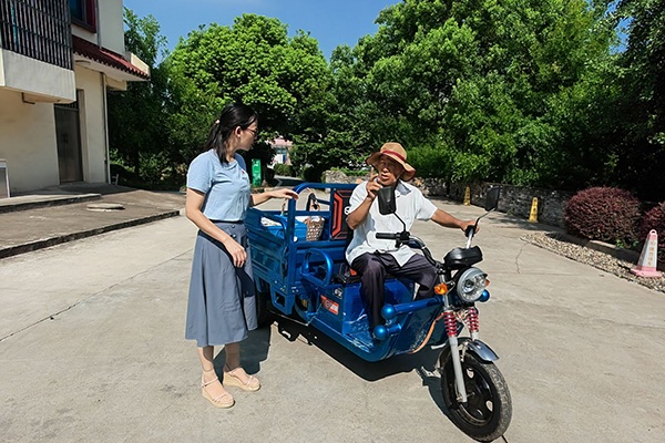 赵癸萍老师在江苏省无锡市惠山区阳山镇桃源村前寺舍调研桃农收入情况