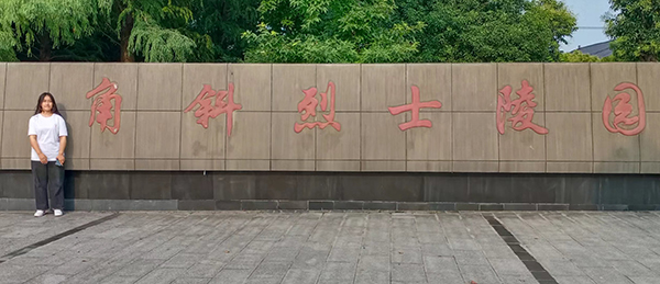 康锐妍在江苏省海安市角斜镇的角斜烈士陵园瞻仰