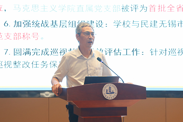 党委书记龚方红在讲话中代表学校党委和行政对暑假期间辛勤工作在抗疫、教科研、技能大赛、招生、后勤基建等各个岗位上的师生员工表示敬意和感谢,指出下半年学校大事要事多、政治要求高、时间紧任务重,要求大家“在大事要事中彰显担当,在大考大战中展现力量”。