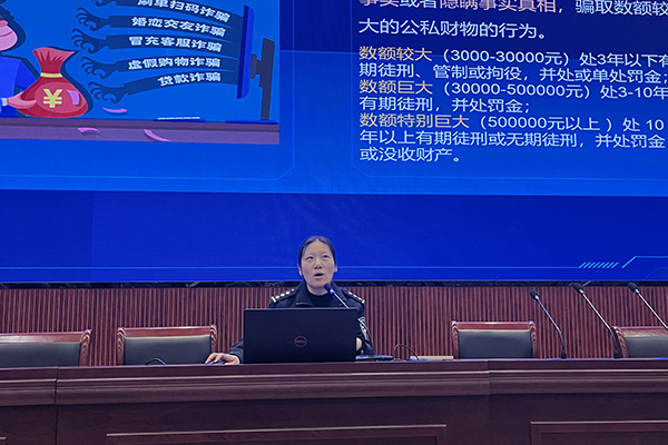 戴科对电信诈骗的定义、链条产业、基本特征以及非法分子的“窝点”等方面展开了细致的讲解。结合近期在高校发生的真实案例,重点介绍了网络刷单、网络退款等含有验证码陷阱的诈骗手法,警示大家“验证码是最后一道防线”。她在现场进行情境再现,讲解了如何识破、预防电信诈骗及遭遇电信诈骗后的解决办法,让大家“认清形势、放弃幻想”,杜绝刷单、裸聊、非法网贷等不良行为。戴科跟同学们突出强调了预防电信网络诈骗关键在于“预防”,只要时刻保持高度的防诈骗警惕性,就可避免受骗。最后,她要求大家做到“三不一多”,即不点击、不透露、不轻信、多核实,帮助大家更好地提高防范诈骗能力。