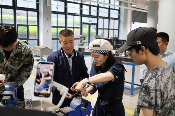 直播过程中,职业体验官、无锡教育电视台主持人林菲霖带领网友们先后走进汽车检测与维修实训室、物联网软件创新工坊、机械制造工程中心钳工实训室和智能制造工程中心先进制造业职业体验中心等处,与正在上课的老师和同学们互动,并动手参与汽车维修与保养、钳工实训、机器人操控等,还与正在备战全国职业院校技能大赛的师生交流,沉浸式体验我校智能制造特色办学和“严谨治学、崇尚实践”的校训内涵。