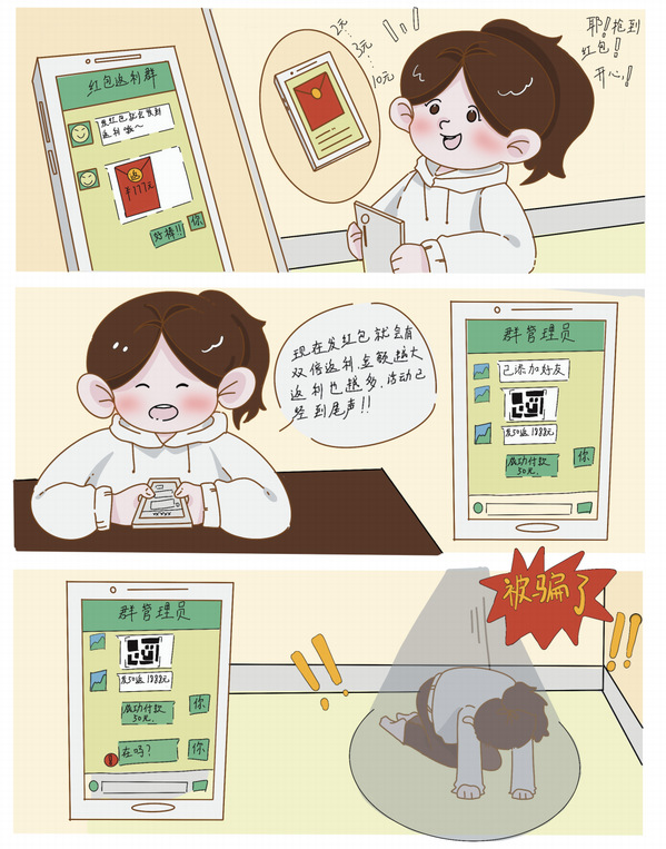 本次活动共收到各班参赛作品近30份,经过评审,最终评选出一、二、三等奖和优秀奖共计10项。同学们在此次文创设计比赛中发挥创意,创作出了一批活灵活现、趣味盎然的文创作品。一等奖获奖作品、洪宜瑄同学创作的《防诈宣传系列插画》运用了漫画加标语的形式,将网络流行语与生动的插画相融合,向大家展现了“中奖”、“红包返利”等网络诈骗手段。一等奖获奖作品、张国峰同学创作的《血淋淋的44万》则从标题到画风都极具冲击力,通过“金钱”“网贷”“魔鬼”等要素展现了网络诈骗的本质,体现了作者的洞察力和创造力。此外,还有许多同学踊跃投稿参赛,通过文化融合产品的宣传手段,以多方面、多角度、多创意的形式表达了他们对网络诈骗的认识。