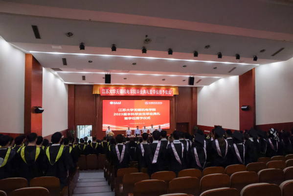 6月21日上午,江苏大学无锡机电学院2023届高职本科生毕业典礼暨学位授予仪式在国际交流中心一楼报告厅隆重举行。江苏大学副校长田立新、学工处处长王海军、教务处副处长李新朝,我校校长周桂瑾、副校长强伟纲及相关部门、学院负责人出席毕业典礼。全体2023届高职本科毕业生以及家长代表齐聚一堂,共同见证了2023届毕业生这一人生中的重要时刻。毕业典礼由副校长奚茂龙主持。