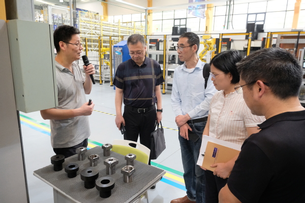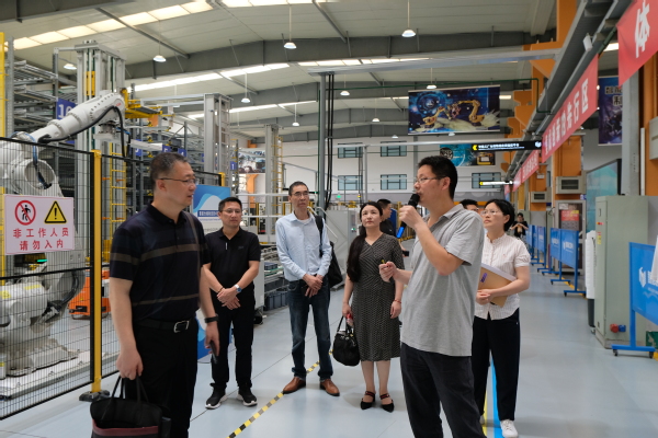 过国忠一行实地走访参观了我校智能制造工程中心、校企共建实验室等场所,了解学校办学硬件设施和产教融合校企合作开展情况。在座谈交流过程中,杨雪琴副书记对调研团一行表示热烈欢迎,并介绍了学校历史沿革和办学情况,特别是“双高”建设以来在深化改革、专业群建设、产教融合协同育人、创新创业等方面的做法和成效。吴慧媛副校长重点介绍了学校近年来科教融汇的特色举措,指出加快科教融汇的探索与实践、着力构建现代职业教育体系,是职业教育的发展方向,未来学校还将在资源整合、教育与科研同向发力、提升人才培养和科技自主创新等方面开展更深层次的探索。