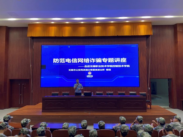 为深入贯彻习近平总书记对打击治理电信网络诈骗犯罪工作的重要指示精神,推进校园反诈宣传工作,进一步增强师生的安全意识,提高反诈骗意识及防范风险能力。9月20日下午,控制技术学院在国教报告厅一楼邀请无锡市公安局滨湖分局雪浪派出所杨恺警官,开展“防范电信网络诈骗专题讲座”,学院2023级全体学生和辅导员共同参加了本次讲座。