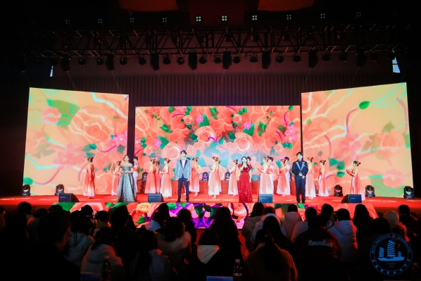 联欢会由学校党委宣传部、工会、团委联合主办,自11月启动,在全校师生员工中征集文艺节目,并进行遴选、编排,活动现场还公布了学校2023年度十件大事,互动抽奖环节将现场氛围推向高潮。