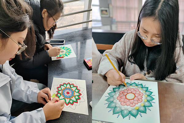 为缓解同学们临近期末的学业、就业、人际压力等方面压力,推动心理健康教育与美育相结合,帮助同学们缓解情绪,放松身心。1月9日下午,由大学生心理健康教育中心主办,物联网技术学院、心理协会协办的“彩绘曼陀罗,浪漫在我心”——曼陀罗彩绘减压活动在图书馆401开展,180余名学生参加了本次活动。