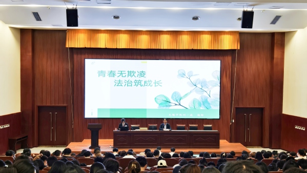 为深入学习贯彻习近平法治思想,坚持以习近平法治思想为指导,着力加强我校青年大学生的法治意识教育,在第六届全省青少年法治宣传教育周内,我校结合蠡溪大讲堂组织开展主题为“青春无欺凌 法治筑成长”专题法治讲座。本次讲座邀请了无锡市中级人民法院刑一庭法官、无锡市关工委委员杨柳担任主讲。学校各年级学生380余人参加,讲座由学生处副处长徐锋主持。