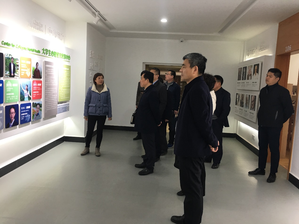 3月17日上午,常州工程职业技术学院的领导在朱爱胜书记的带领下,参观了大学生心理健康教育中心。心理中心主任余新年就心理中心功能室、设备等进行了介绍。来访领导对我校心理中心建设表示了赞扬。