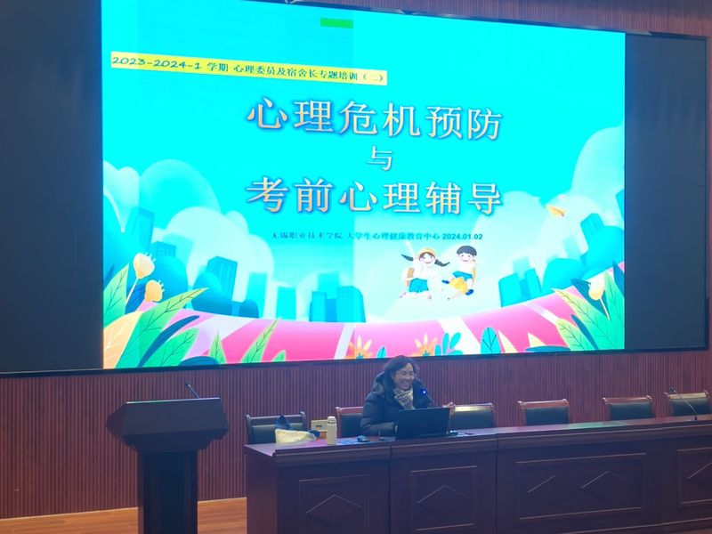为贯彻落实省教育厅《关于进一步加强高校学生管理工作》的相关要求,推进学校心理健康教育工作,夯实“宿舍—班级—学院—学校”四级预警网络,充分发挥班级心理委员、宿舍长的“哨兵”和朋辈助人的作用。1月2日下午,大学生心理健康教育中心开展了以“心理危机预防与考前心理辅导”为主题的专题培训。