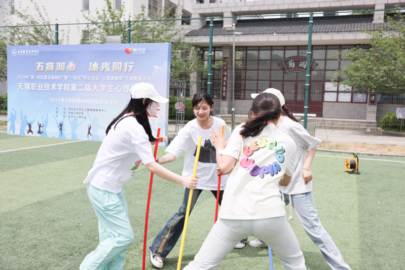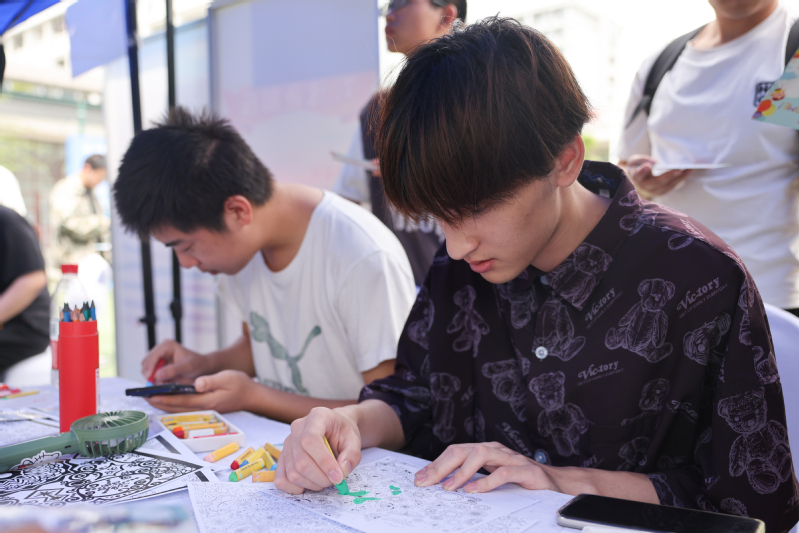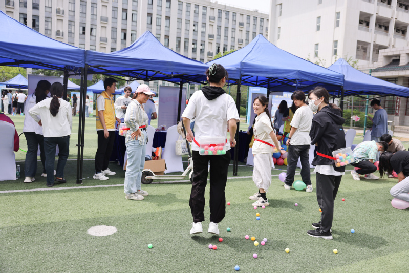 个人体验区的“心理知识问答”活动充分调动同学们的注意力和想象力,创意无限,以智慧心;“涂色解压”活动中,同学们沉浸式体验创作,尽情享受艺术表达的魅力,以美润心;团体合作区的“一圈到底”“不倒森林”等活动引导同学们一起体验团队合作的快乐,增进了彼此的信任和尊重;“乒乓球接力”“激情传球”等活动考验团队的默契配合,为友谊增添一份信任的催化剂。此外,还有“踩气球”、“公鸡下蛋”、“爱的拥抱”、“情绪粉碎机”等活动帮助同学们疏解压力,关怀自我。