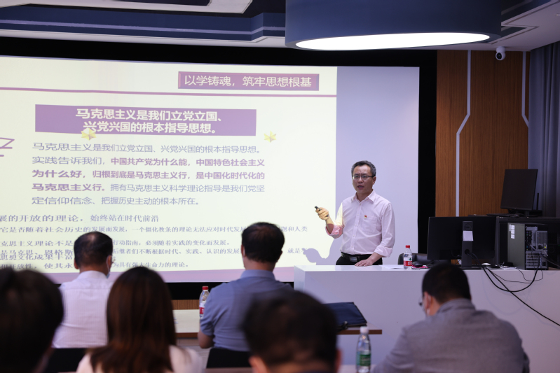 苗勇以《以学铸魂、筑牢思想根基;守正创新、做好文化传承》为题,从坚定理想信念、深刻认识“两个确立”的重大意义和广泛认同新时代取得的重大成就等三个方面阐述了筑牢思想根基的必要性,重点围绕“中国式现代化”这个关键词谈了自己学习贯彻党的创新理论的收获体悟;接着,他从贯彻“两个结合”的角度,介绍了近几年设计艺术学院在传承中华优秀传统文化方面所做的开拓性工作和取得的成效,最后,他结合学院专业特色,就如何将党建与业务工作深入融合,大力推进“党员工作坊”党建育人平台建设谈了下一步的工作思路。