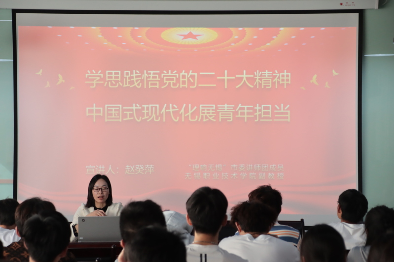 为深入开展学习贯彻习近平新时代中国特色社会主义思想主题教育,引导青年学子学思践悟党的二十大精神,5月23日下午,控制技术学院学生党支部特邀马克思主义学院副教授、无锡市委讲师团“理响无锡”宣讲团成员赵癸萍,以《学思践悟党的二十大精神·中国式现代化展青年担当》为题开展专题党课。80余名师生党员及入党积极分子参加学习。