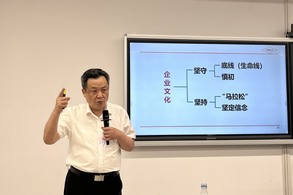 朱倩代表全体师生对王洪其董事长的到来表示热烈欢迎,并颁发“红创宣讲团”宣讲专家聘任证书。随后,王洪其以“发挥党建引领作用,促进企业高质量发展”为主题,讲述了党建引领下的企业文化、核心理念、管理机制及企业一路走来的历程。企业注重发挥党员旗帜作用,以“管理效率与成本”为支点,以“成本优势、客户价值、机制群建设”为支撑,形成了以“目标管理+进步率+自我管理”的管理机制及“坚守+坚持”的企业文化。同时,王洪其强调企业的发展离不开人才,我校多名优秀校友担任企业高工或者企业管理层,欢迎更多优秀毕业生加入企业。