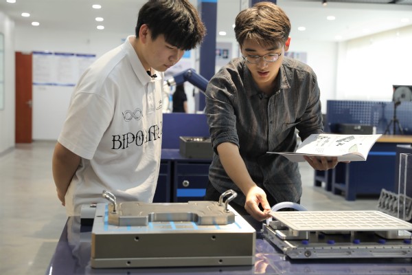 学生展示使用智能设计与应用技术实验室设备