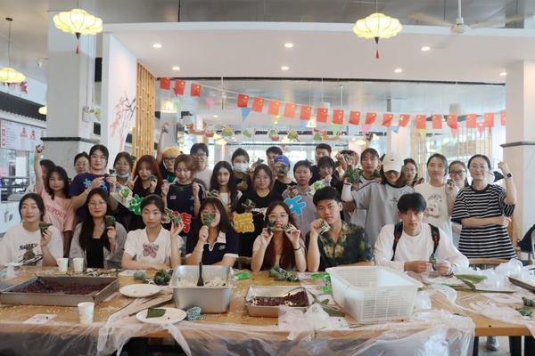 活动现场,粽叶、糯米、红豆、蜜枣等食材摆放整齐,包粽子环节正式开始。同学们在食堂工作人员的细心指导下,全情投入,认真学习包粽子的技艺。从卷粽叶、填蜜枣、包粽米、系粽绳,很快一个个粽子就做好了。由于经验不足,同学们刚开始出现了漏米、包住这头裹不住那头等情况,但大家不气馁,在不断的尝试下,渐渐摸索出门道,一个个棱角分明的粽子在巧手下逐渐成型。虽然粽子大小不同,形态各异,但每一个都蕴含着收获的味道,大家享受着自己劳动的成果,脸上洋溢着幸福的微笑。活动现场欢声笑语不断,大家一边包粽子一边交流端午节传统习俗,既拓展了端午节知识,又体验了包粽子的乐趣。
