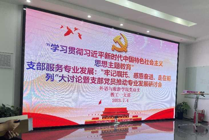 为深入开展学习贯彻习近平新时代中国特色社会主义思想主题教育,全面贯彻党的二十大精神,根据学校《关于开展“牢记嘱托、感恩奋进、走在前列”大讨论的通知》要求,外语与旅游学院教工一支部于7月11日下午开展“牢记嘱托、感恩奋进、走在前列”大讨论暨支部党员推动专业发展研讨会,把习近平总书记对职业教育工作的重要讲话和指示批示精神转化为推动工作的实践指引,推动主题教育走深走实、取得实效。