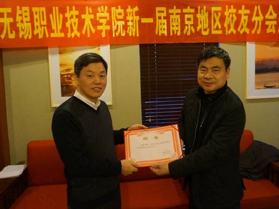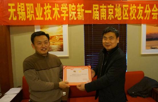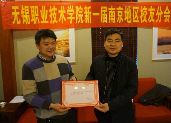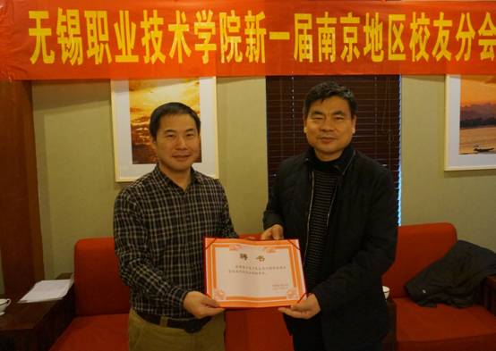 大会听取了无锡职院校友会南京分会筹备情况的汇报,经校友代表充分酝酿、讨论并和学校会商,成立新一届南京校友会组织机构,朱爱胜书记为南京校友会授牌并为南京校友会新一届领导班子成员颁发了聘书。