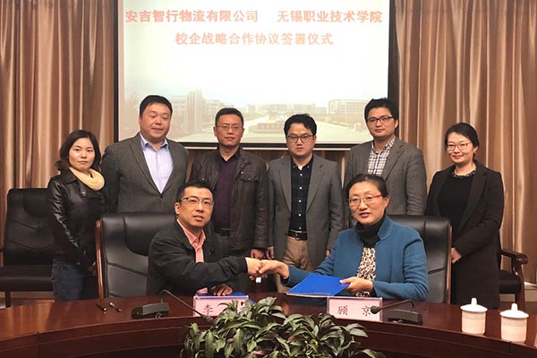 3月14日上午,安吉智行物流有限公司无锡公司李超总经理一行3人到我校考察访问,并正式签订校企战略合作伙伴协议。顾京副校长及管理学院负责人、相关教师参加了签约仪式。