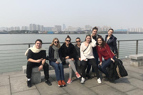 中外学生在国际交流中心合影