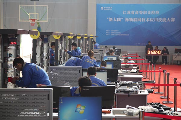 物联网技术应用赛项选取了工业化与信息化深度融合、核心技术与技能应用深度结合的智能工厂为主题,要求选手对指定应用业务场景分析,并进行设备选型和安装,然后对物联网云平台和感知层节点进行开发调试,最后在PC端和移动安卓端开发应用程序,与物联网感知层Zigbee、RFID、网络摄像机等设备进行交互,实时采集底层传感器数据信息,进行分析显示以及自动控制,完成业务场景所需功能。比赛最终评出一等奖3名、二等奖6名,三等奖9名,我校代表队由黄翀鹏、邱晓荣两位老师指导,朱学文、胡天睿、顾辉组队,同江苏信息职业技术学院、常州轻工职业技术学院代表队名列前三,斩获一等奖。