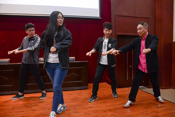 开场,高老师先声夺人,为同学们表演了锡剧名剧《珍珠塔》之前园会选段,赢得了同学们的阵阵掌声。随后,高老师从“从艺的感想、学艺的艰辛、眀艺的特色、忠艺的自信”四个方面,分享了对戏曲艺术的理想与热爱。他向同学们传达了自己“道技合一、声情并茂”的人生理念,鼓励同学们树立人生理想,并坚定不移地追求理想。中场,高老师声情并茂地表演了锡剧《双推磨》,还现场邀请三组学生,亲自传授锡剧名剧《双推磨》动作和语言腔调,让学生身临其境地感受锡剧文化的魅力。最后,在一曲《江山无限》的歌声中,讲座圆满结束。