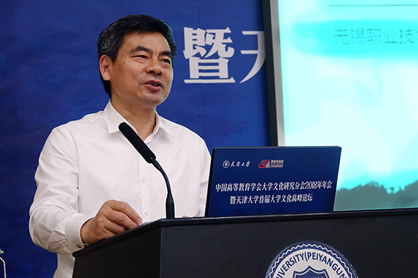 5月12日,以“学习贯彻党的十九大精神,坚持文化自信建设教育强国”为主题的中国高等教育大学文化研究分会2018年年会暨天津大学首届大学文化高峰论坛在天津大学召开,40多所本科和高职院校的100多名代表参加了论坛。我校党委书记朱爱胜参加了会议,并在论坛上就“新时代高职院校文化育人体系的重构”作主题发言。