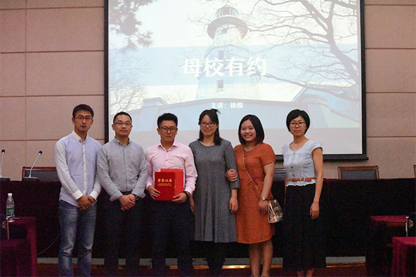 5月29日下午,“母校有约”校友论坛第二期在国际交流中心第二报告厅正式开讲。我校艺术与设计学院广告设计专业30831班学生徐俊,现任饭盒创投创始人兼CEO、俊姆森影视工作室创始人、江苏趣投信息科技有限公司创始人兼CEO,应邀回到母校,和学弟学妹们分享了题为《对话未来的自己》的成长报告会。学生处处长助理刘文庆、艺术与设计学院院长助理刘姣姣、校友办刘玮、艺术与设计学院学工办主任林佳燕、艺术与设计学院辅导员蒋红中以及艺术与设计学院100多名学生参加了活动。活动由蒋红中主持。论坛开始前,刘文庆和刘姣姣分别为徐俊校友颁发了兼职教师聘书和优秀校友证书。