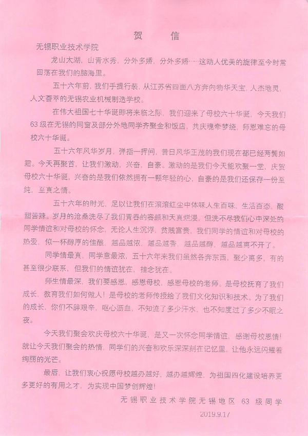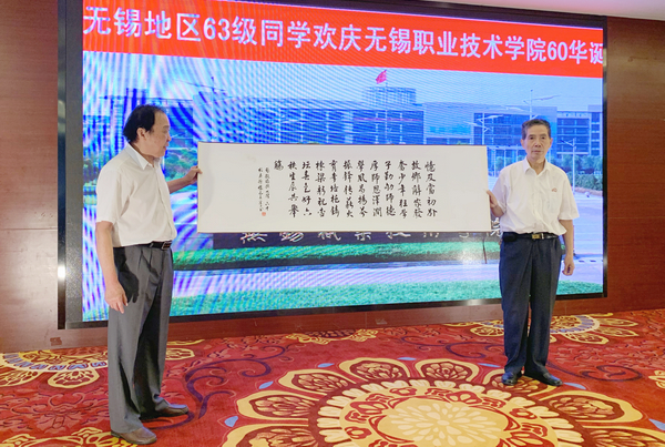 在我校60周年校庆即将来临之际,9月17日,无锡地区1963级70余位老校友欢聚一堂,重温校园美好时光,欢庆母校60华诞。老校长赵克松、校友办金湘虹老师应邀参加活动。