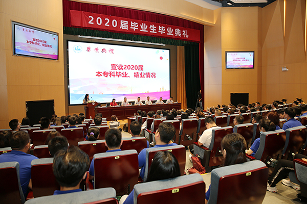 6月23日上午,我校2020届毕业生毕业典礼在综合楼一楼报告厅举行。校领导朱爱胜、龚方红、周桂瑾、杨雪琴、强伟纲、吴慧媛、徐浪参加,党办校办、宣传部、教务处、后勤处、保卫处、学生处、团委等职能部门领导和体育部、马院教学院部领导及各二级学院党政负责人,辅导员、班主任、毕业生、家长代表近150人受邀观礼,共同见证毕业时刻。