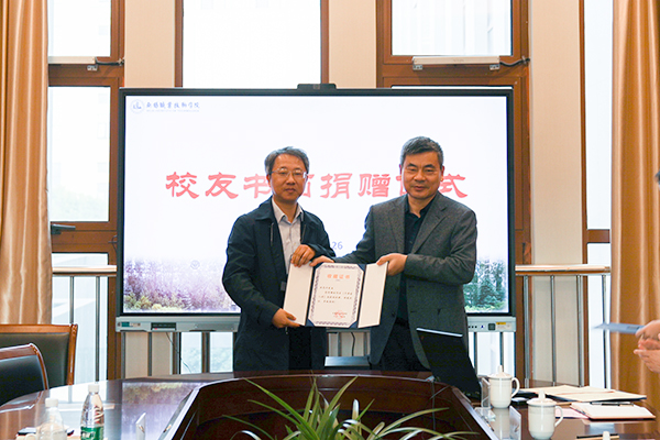 捐赠仪式上,管871班校友、无锡压缩机股份有限公司经理、原学生书法协会会长巫忠兴代表校友捐赠书画作品,校党委书记朱爱胜代表母校接受作品,并为校友颁发收藏证书。校团委书记赵健代表团委为吴志波、巫忠兴、衡兴权三位校友颁发社团荣誉导师聘书。