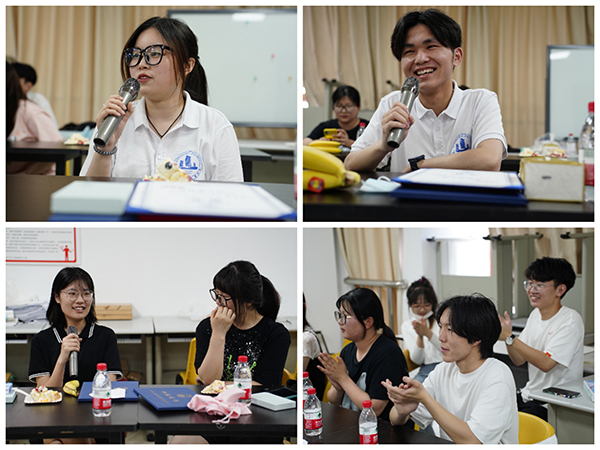在交流发言环节,大家分享着毕业蛋糕,畅所欲言,毕业生们纷纷表达了对母校的感恩、对老师的感谢和对同学的惜别。室内71932班陈娅楠表示:“一眨眼今年的毕业季都轮到我做主角了,这三年的经历让我逐渐成长为一个更好的自己!” 数媒71981班周洲有感而发:“感谢大学期间交到的所有良师益友,聚是一团火,散是满天星,再舍不得职院,今天也要毕业了。虽然不知道未来的路是什么样子的 ,但是年轻嘛,未来可期,前路有光,希望大家都能保持热爱,不忘初心!”