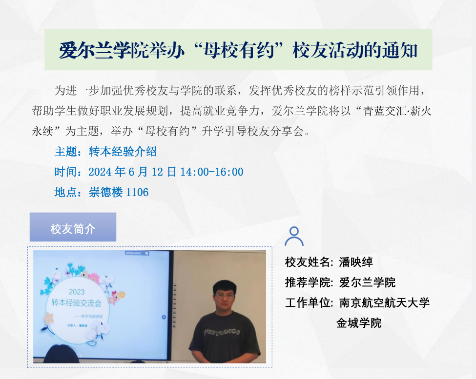 爱尔兰学院举办“母校有约”校友活动的通知