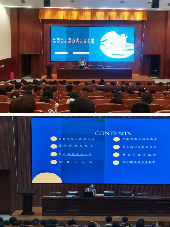 吴凯博士从自我定位与目标设定、时间管理与效率、学习与探索心态、社交与人脉、心态调整与抗压能力、财务管理与投资、创业精神与创业思维等方面,结合真实经历,给同学们分享了自己的学业和职场成长经验。他鼓励同学们要勇于面对挑战、追求自己的梦想,同时也要保持对现实的清醒认识和积极乐观的心态,不断调整和优化自己的职业路径,不断提升自己的综合素质和职业竞争力。
