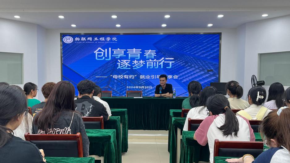 为汇聚校友力量,助力职业生涯规划,物联网工程学院于9月20日下午,在图C-401教室成功举办了一场主题为“创享青春,逐梦前行”的“母校有约”就业引导分享会。此次活动特邀徐州亿晟供应链管理有限公司董事兼副总经理、微电子31331班杰出校友邓奇先生作为主讲嘉宾,吸引了超过100名在校学生的热情参与。