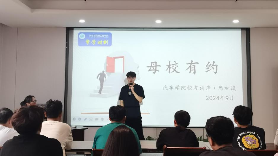 为进一步发挥青年榜样的引领作用,9月14日,汽车与交通工程学院邀请目前就读于常熟理工学院的优秀校友席加诚在国教206为大一新生开展 “明笃行之志,不负韶华行且知“校友分享会。学院党总支副书记刘雄出席本次活动,学工办辅导员和100余名大一团员青年参加了此次信仰公开课。