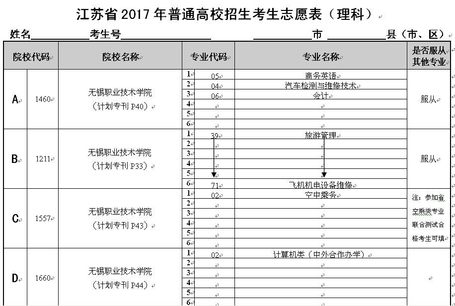 特别说明:上线考生,按样表填报志愿,录取机率大,专业选择机会多,进档绝不退档!