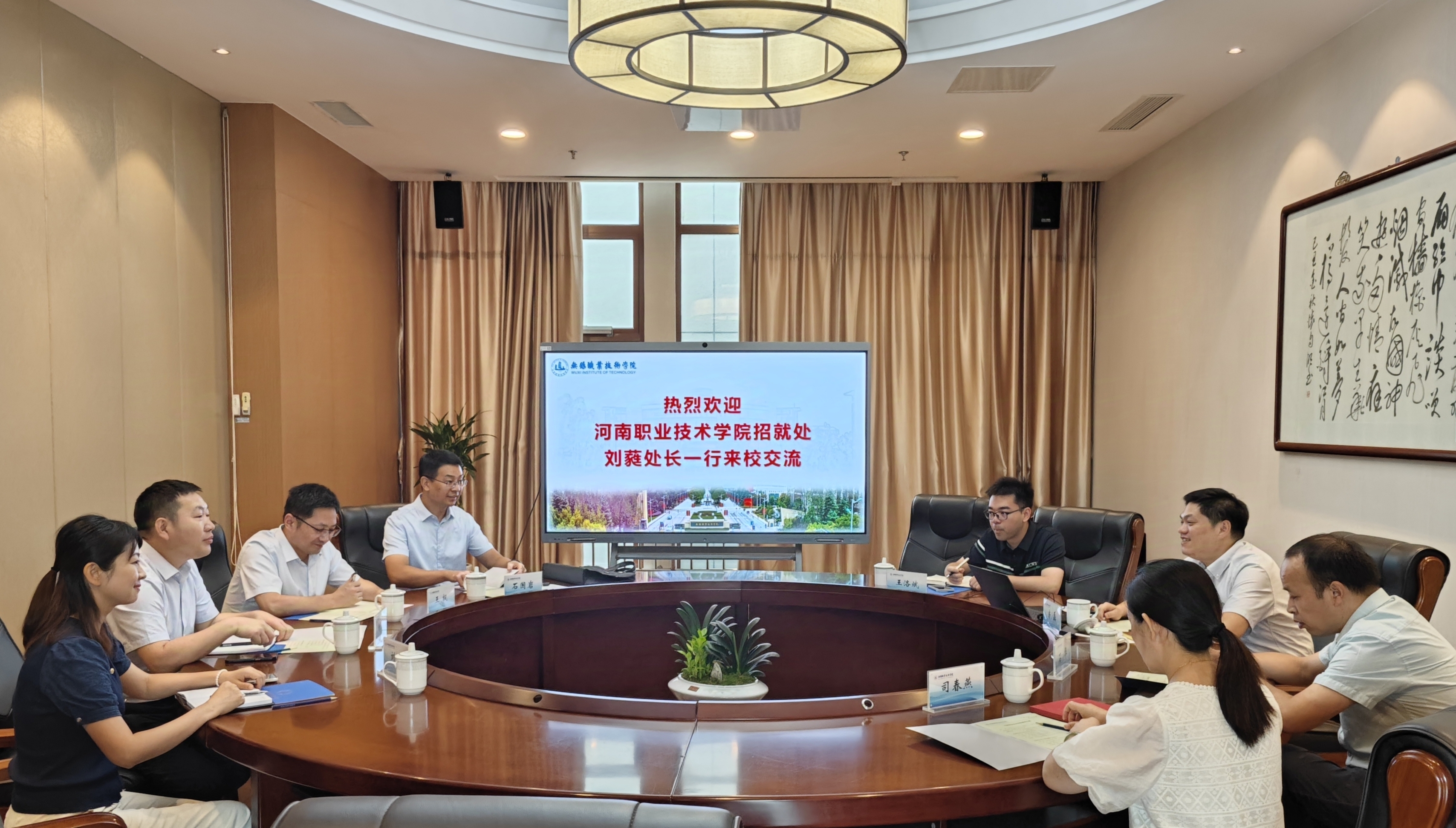 9月26日下午,河南职业技术学院招生就业处处长刘蕤一行4人来我校交流新高考改革学校招生工作。我校招生就业处处长房磊、副处长石华,热情接待了来宾,双方在厚德楼202会议室进行座谈。