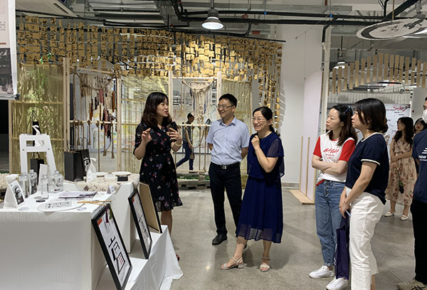 7月1日下午,为庆祝建党99周年,机关二支部与对口结对二级学院——艺术与设计学院共同开展主题党日活动,机关二支部全体党员前往产教融合大楼一楼参观艺术与设计学院“品读江南”毕业生艺术设计展。