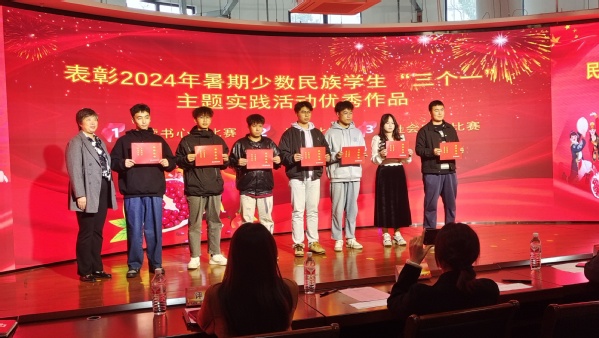 活动伊始,学生工作处徐悦处长致辞预祝活动圆满成功,并为参加2024年暑期少数民族学生“三个一”主题实践活动的学生颁发荣誉证书和奖品。