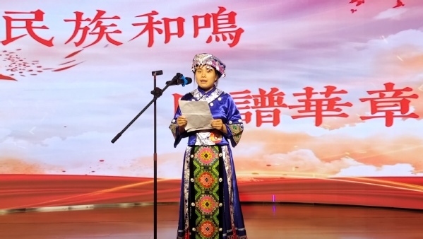 在朗诵比赛中,各民族学生身着民族服装,依次登台亮相,以饱满的热情、激昂的语调展现出对祖国母亲的热爱。现场师生认真观看选手们的激情朗诵,时不时地为参赛同学鼓掌助力。在才艺展示环节,各民族同学展示了自己的特长,石榴籽协会成员带来的藏族舞蹈《拉岗踏歌》更是将活动现场氛围推向高潮,赢得师生们的阵阵喝彩。